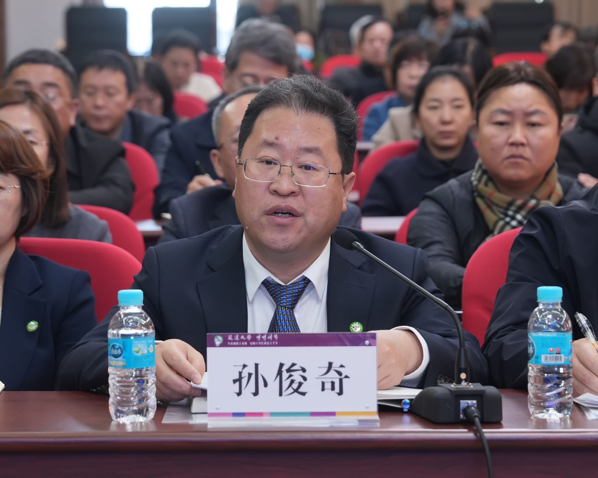 孙俊奇代表学校作表态发言,他表示,专家组的意见既充分肯定了我校师范类专业建设和人才培养成效,也精准指出了存在的问题与不足,对我校进一步深化教育教学改革、强化专业内涵建设具有重要的指导意义。学校对专家组的意见诚恳接受、照单全收,将对意见建议逐条梳理、分类归纳、专题研究,以严格的标准坚决完成整改任务,以有力的举措全面提升育人质量,以强烈的担当服务国家战略需求,充分发挥综合性大学的多学科优势,以目标为导向、以问题为抓手、以效果为标尺,坚持高起点和交叉融合,系统性重塑师范教育体系与人才培养目标定位,通过推进全覆盖整改与立体化建设,将我校师范专业办出区别于师范院校的特色、品质与影响力,不断为国家基础教育输送更多“四有”好老师,切实回答好“强国建设,延大何为”“东北振兴,延大何为”的时代命题。